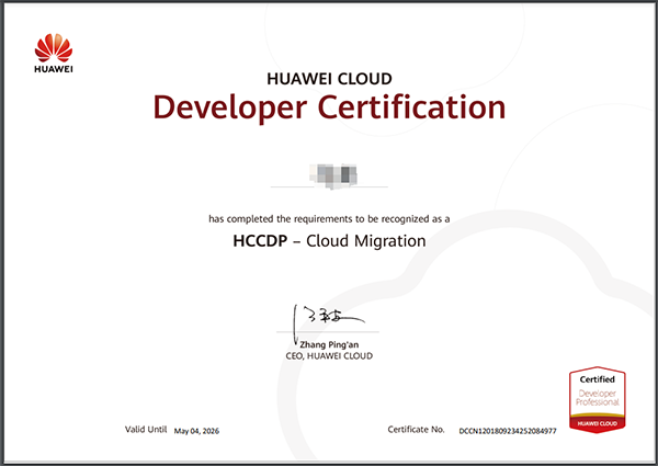 经过培训赋能和考试认证,J9国际站 J9技术华为云事业部已有18人获取华为云开发者-云迁移HCDDP-Cloud Migration证书。