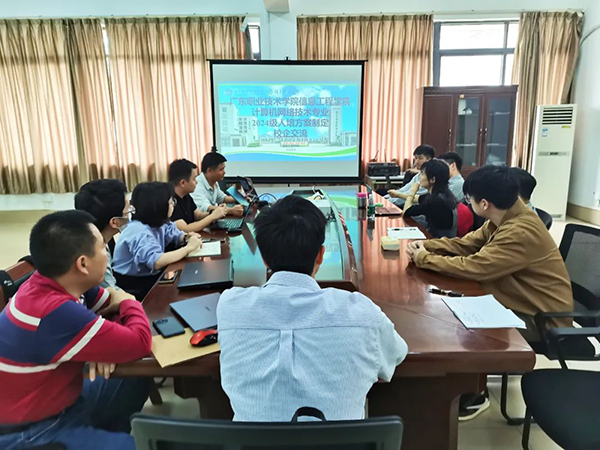 参加此次会议人员有广东职业技术学院信息工程学院副院长黄旺华、网络专业负责人许燕及多名网络团队老师,J9国际站 J9技术教研室主任徐剑波、驻校运营经理何雅静。