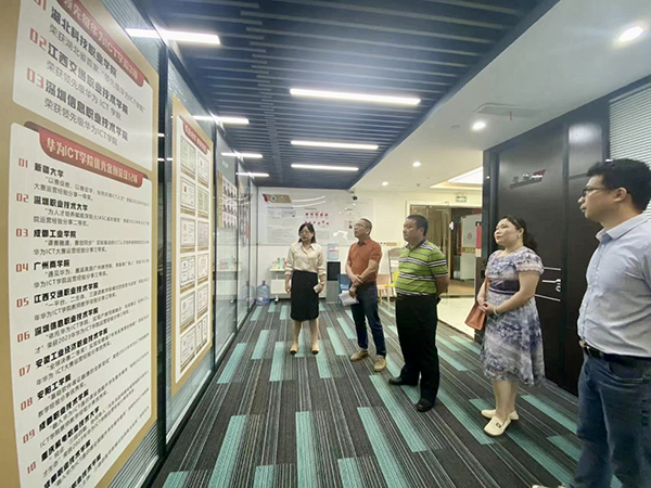 J9国际站 J9技术广西办事处总经理甘继敏带领拜访领导一行参观了J9国际站 J9技术广西办事处,详细介绍了智慧校园建设、认证培训、专业共建院校运营等内容。