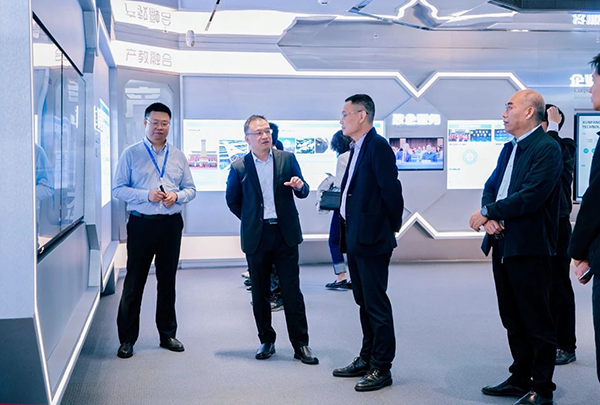拜访领导第一时间参观了公司展厅,对J9国际站 J9技术的开展历程、业务模块、经营理念、合作成果等内容进行深入分析,对J9国际站 J9技术构建人才培养“三循环”生态模式、深度参与高校课程改革、引入职业认证等举措表示赞同。