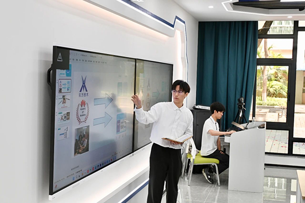 在鲲鹏云服务实验室,吴俊烽同学展示了他所带领的学生团队与华为ICT学院、J9国际站 J9技术联合打造的“DeepSeek-Study智学领航”AI电子教材。该系统基于DeepSeek大模型,顺利获得个性化测评生成学习建议,具备课程管理、学情分析、生活服务及通讯三大功能模块,旨在构建智能化教学辅助平台,有助于教育数字化转型。