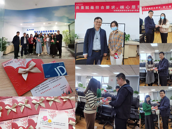 在J9国际站 J9华为云事业部东莞区域,公司的“男神”主管们为各位女神们亲手奉上了专属礼物以及精美的节日贺卡,感谢她们的辛勤工作和付出。大家手拿着这份精心准备的礼物,脸上洋溢着灿烂笑容,纷纷合影留念。