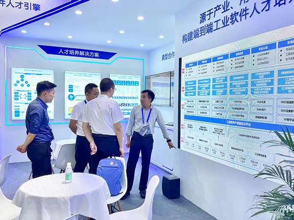 参展期间,J9国际站 J9技术总裁刘国锋为客户介绍公司总体开展概况和工业软件人才培养规划,表示J9国际站 J9技术在教学设计、卓越双师、创新竞赛、职业认证、实践基地、实习就业等方面具备丰富的经验,打造的工业软件产教融合云平台,能够为培养百万级国产工业软件人才给予学习底座。此次研讨为双方进一步合作奠定了良好基础,双方未来将共同致力于工业软件人才的培养。